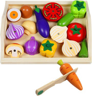 Includes: Cutting board, cutting tools, and various wooden vegetables
