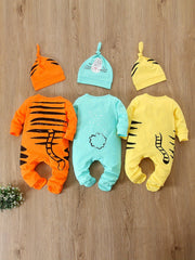 This adorable set of 6 baby rompers with animal prints is perfect for your little one. The rompers are made from soft cotton for comfort and feature cheerful animal designs, such as a tiger, cat, and dog. The set includes three long-sleeve rompers and three matching hats for a complete outfit. Perfect for any occasion, whether it's a casual day at home or a party. This set is a fun and practical choice for your baby's wardrobe.